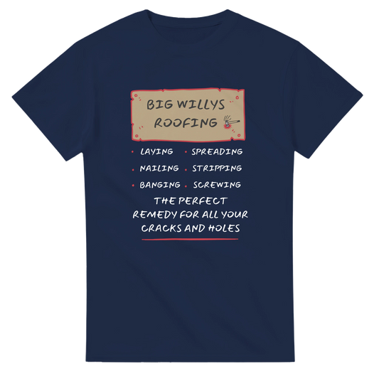 BIG WILLYS ROOFING - Humorous Cotton T-Shirt - Sexual Innuendo Design